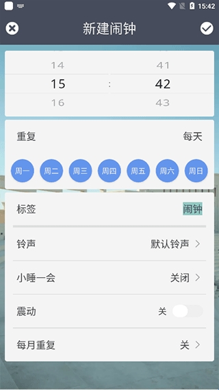 2、填写闹钟的详细信息,设置好点击上方√标志即可保存