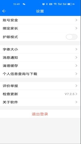 4、设置:绑定家长,护眼模式,字体大小,个人信息查询与下载等。