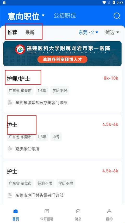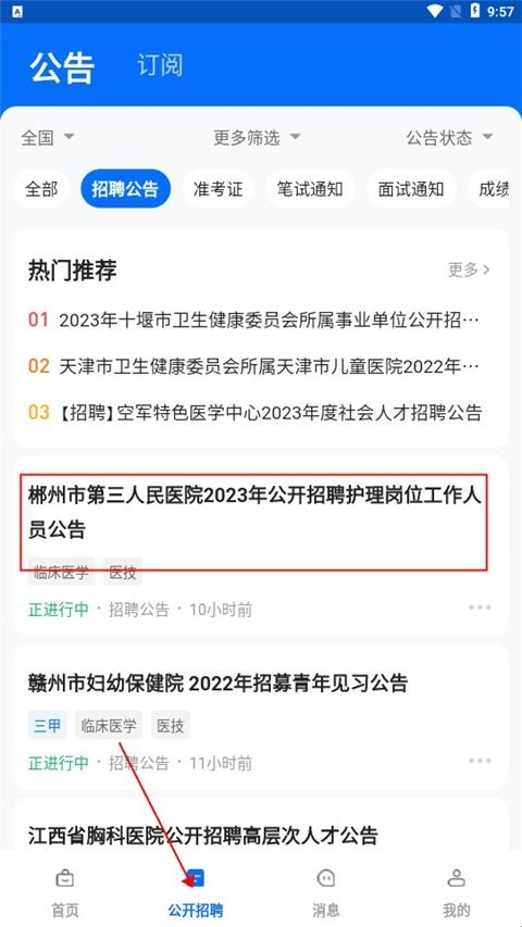 8、点击进入公开招聘,用户可以在这这里看到各个医院的招聘公告。