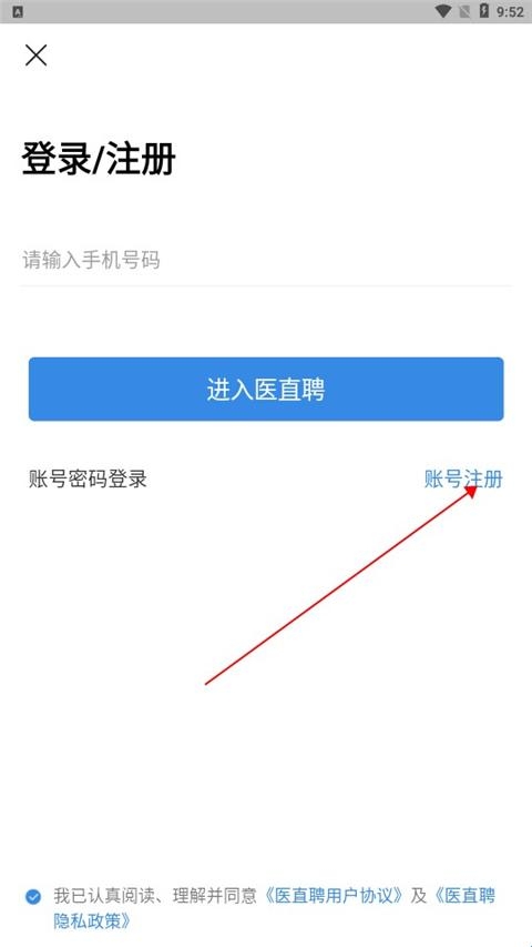1、在本站下载安装并打开医直聘app,进入软件,点击账户注册。