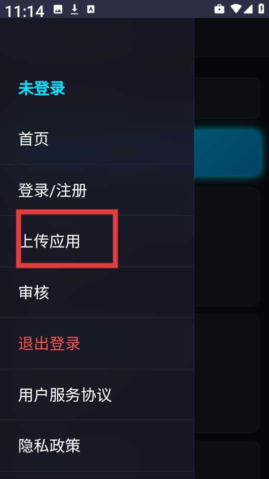 1、进入青墨应用商店app之后,点击左上角的个人头像按钮,找到“上传应用”。