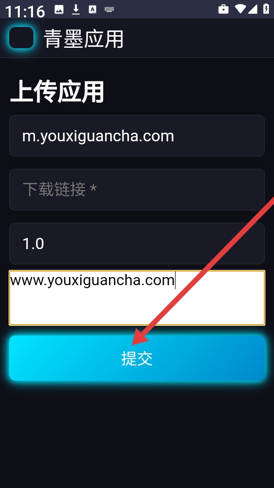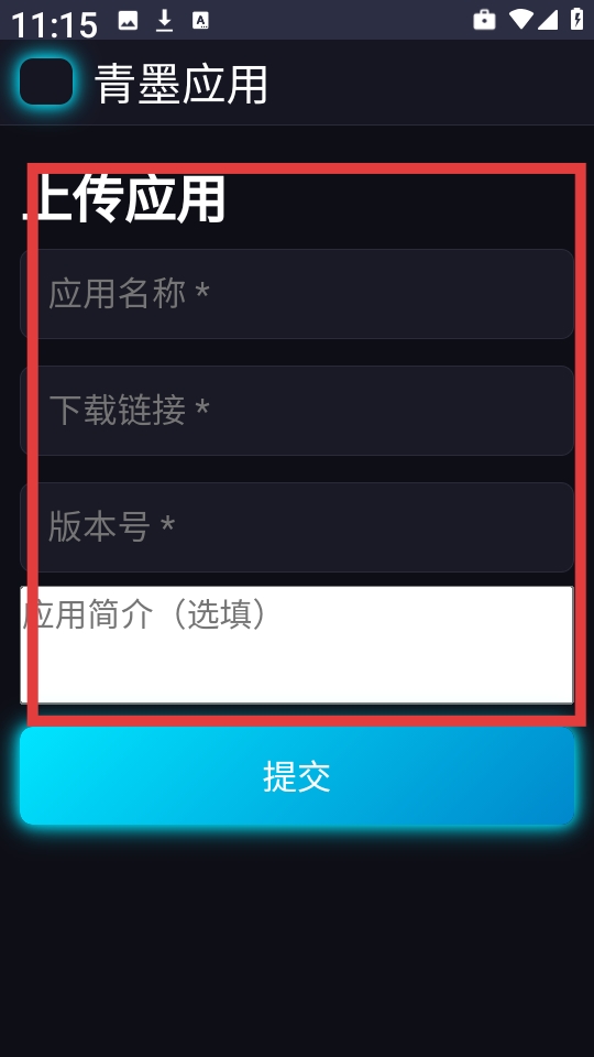 2、接着自定义输入应用名称,下载链接,版本号以及选填应用简介。