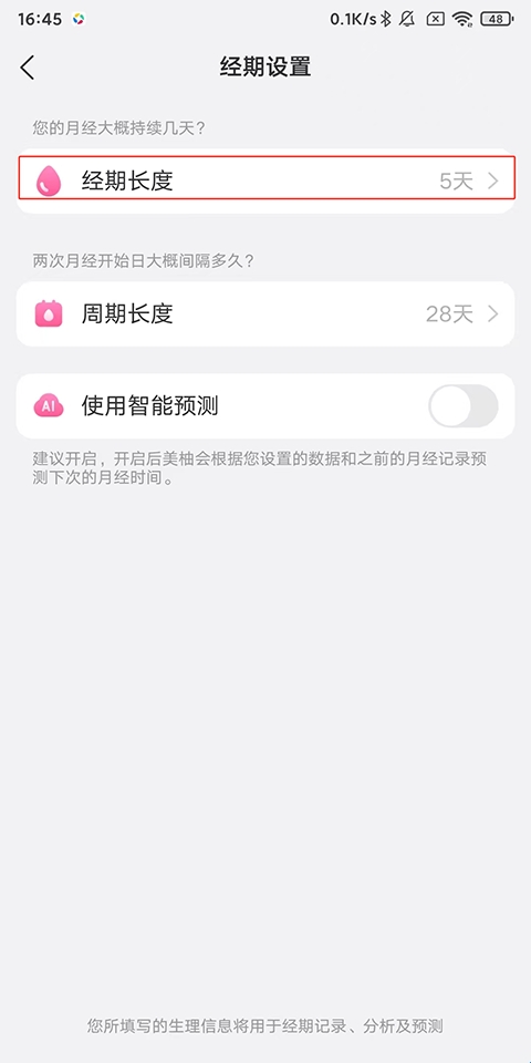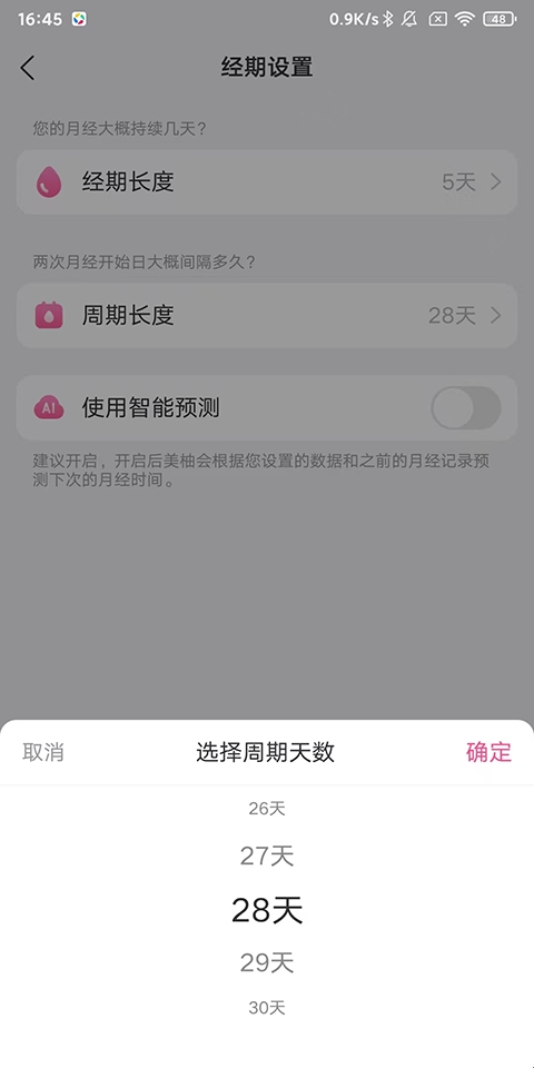 3、除了修改经期日期外,你还可以根据自己的实际情况调整周期长度。在经期设置页面中,找到“周期长度”选项,并进行相应的调整。这有助于美柚APP更准确地预测你的下一次经期。