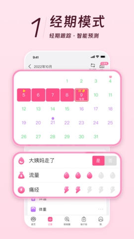 2、【记录大姨妈月经期】只要简单记录大姨妈月经期日期,自动推算大姨妈月经期、排卵期以及减肥美容丰胸时间;