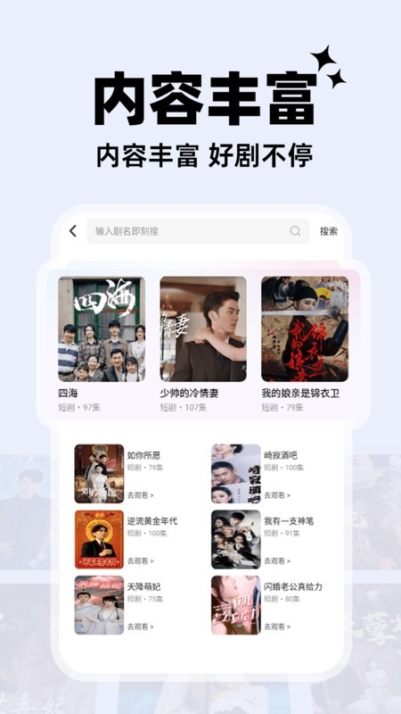 2、通过输入剧名等关键词,快速找到想看的短剧,方便快捷地获取目标内容。