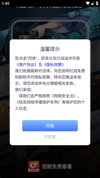 1、打开app,阅读用户协议和隐私政策之后点击同意;