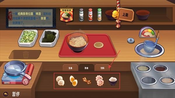 4、这里提供多种调料,玩家可以选择不同的配料烹饪美食