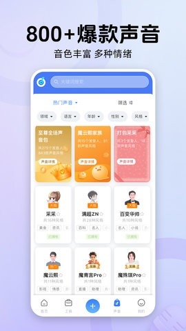 魔音工坊APP是专为大家打造的一款方便易用的手机配音工具,为大家提供的配音素材也是很丰富全面的,能够根据自己的选择来使用。不管是广告推销还是电视动漫的配音都应有尽有的,满足大家的不同使用需求。支持多种炫酷音效,一键实现语音变声,让聊天、配音更轻松。平台为你带来超多语音包资源,在线配音,轻松实现文字转音频,配音更轻松。