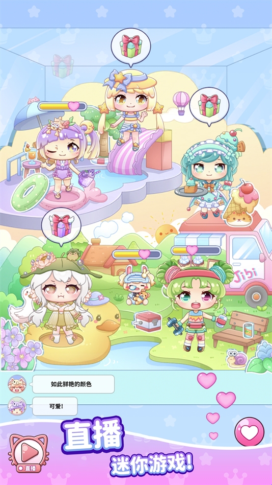 1、游戏采用Q萌可爱的精致卡通画风,色彩柔和明亮,营造出温馨梦幻的童话氛围。