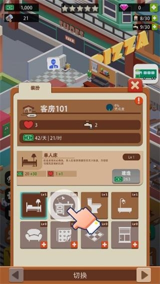 5、离线也可持续赚取金币,合理招募和分配员工岗位,提升效率,快速完成各类建造与经营任务。