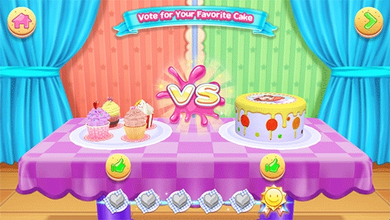 2、参加比赛:制作好的蛋糕可以参加比赛,玩家需要在比赛场地对其他蛋糕进行投票,同时自己的蛋糕也会接受其他玩家的投票。根据投票成绩,若蛋糕脱颖而出,玩家将赢得星星奖励。