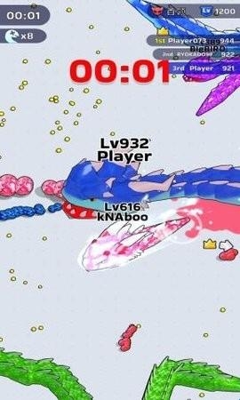 4、游戏内置排行榜系统,让玩家随时查看排名,激励玩家坚持更久、吃掉更多弱者,获得更高分数和奖励,提升竞技乐趣。