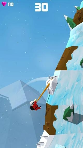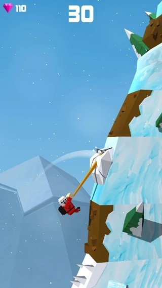 1、游戏操作简单,通过点击屏幕精准控制冰镐的长度和角度,轻松完成攀登。