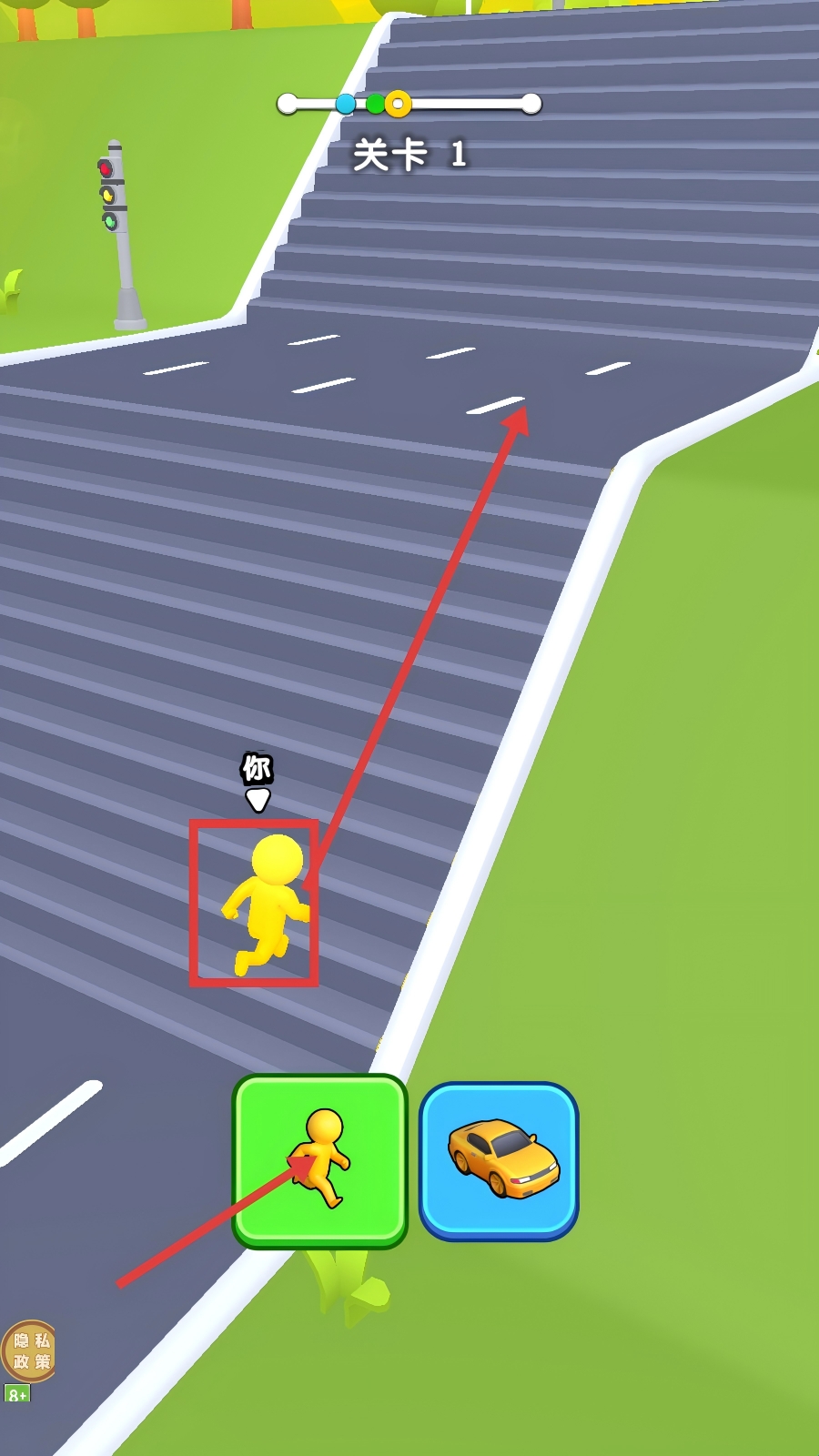 3、点击蓝色小人图标,切换为黄色小人,操控小人奔跑,持续向终点迈进。
