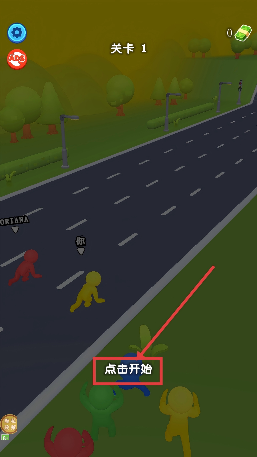 1、进入【关卡1】,点击【点击开始】,加入道路竞赛,开启闯关之旅。