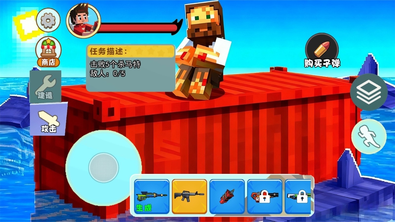 2、融合像素建造与求生元素,可自由运用方块打造生存空间,同时应对生存难题,玩法更丰富。