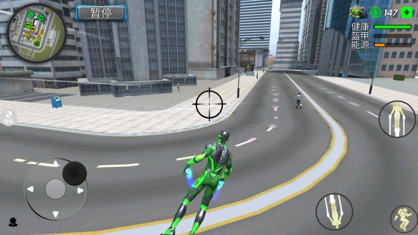 1、使用虚拟摇杆控制移动,点击发射蛛丝在建筑间摆荡,快速抵达任务点。这种操作方式让玩家能够快速响应各种事件。