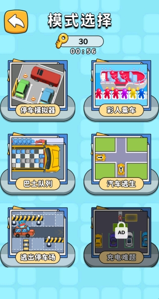 2、游戏包含了很多的模式,有停车模拟器、彩人乘车、巴士队列和汽车逃生等。