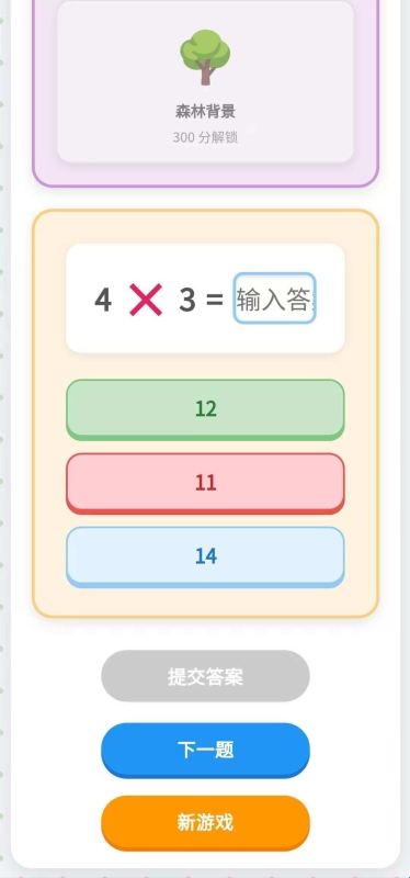 2、关卡形式多样,包括数字填空、物品计数、结果匹配等,让学习过程绝不枯燥。