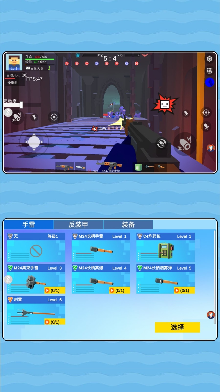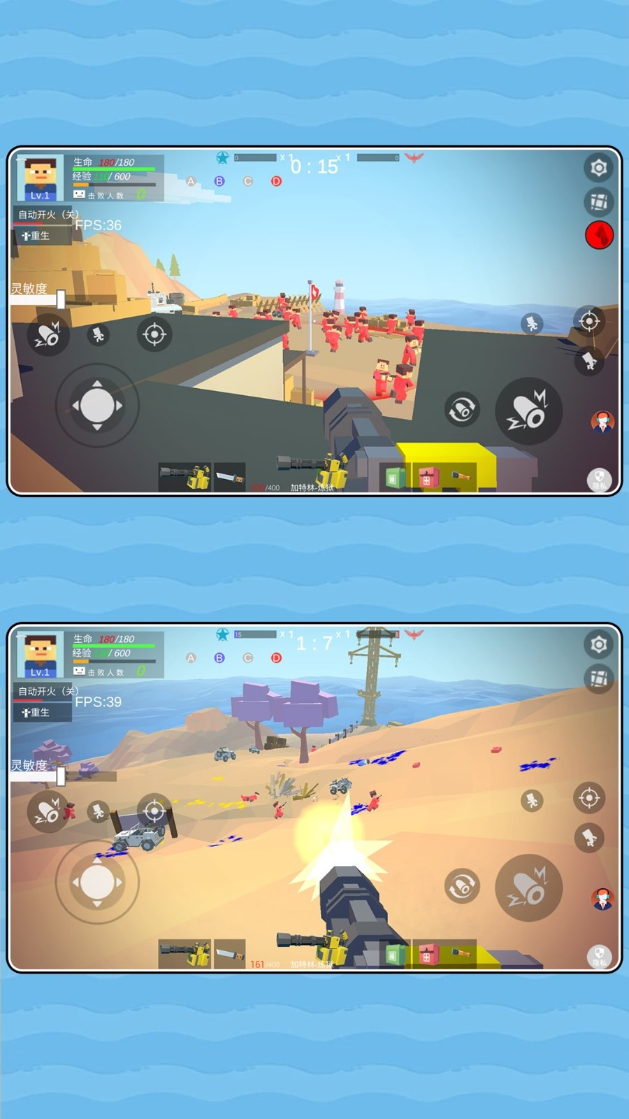 2、点击开火键射击,在像素关卡中清除敌方据点,解锁稀有武器。