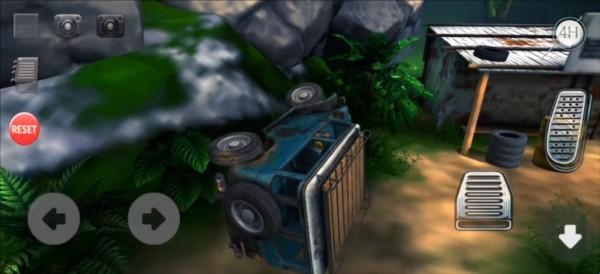 1、游戏中玩家驾驶卡车在玻利维亚山间前行,屏幕左边是转弯的方向,右边是刹车和油门;
