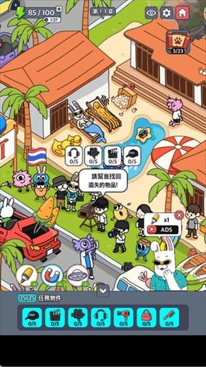 2、进入游戏界面中,根据任务栏中的物件在场景中进行寻找;