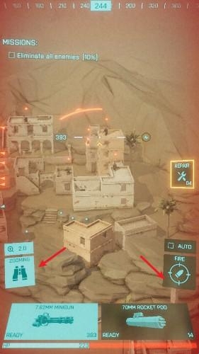 2、点击左侧的望远镜,可以拉进距离,点击右侧的按钮即可进行射击。