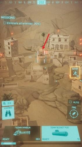 1、驾驶你的武装直升机前往敌人的阵地,用子弹和炮火对敌人进行打击,消灭所有的敌人来闯过关卡。