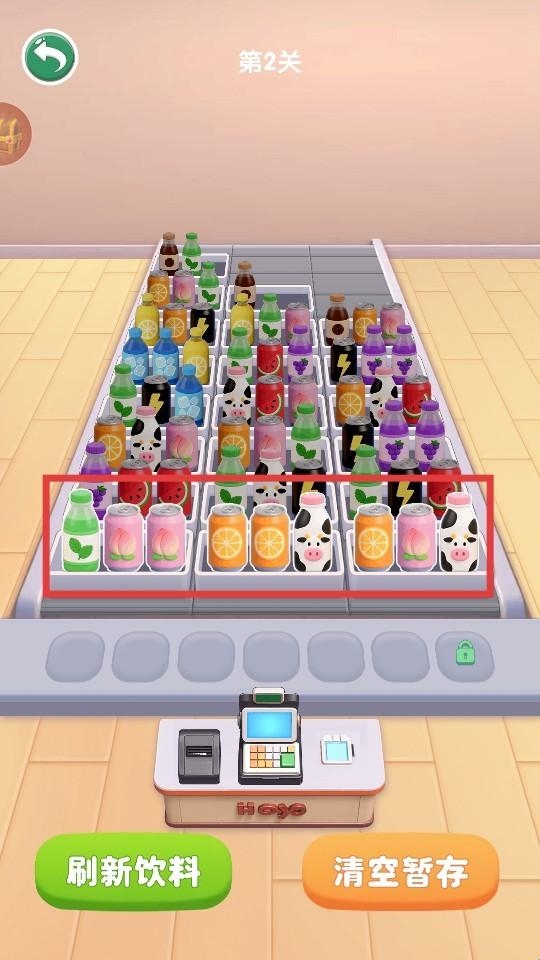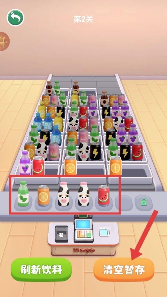 3、当货架上的饮料过多难以消除时,可以点击清空暂存来释放空间。