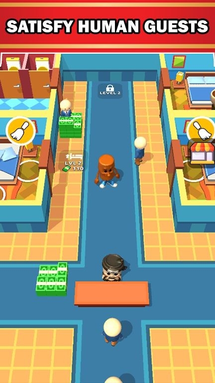 1、满足顾客的需求来获得收益,快速升级自己的酒店。