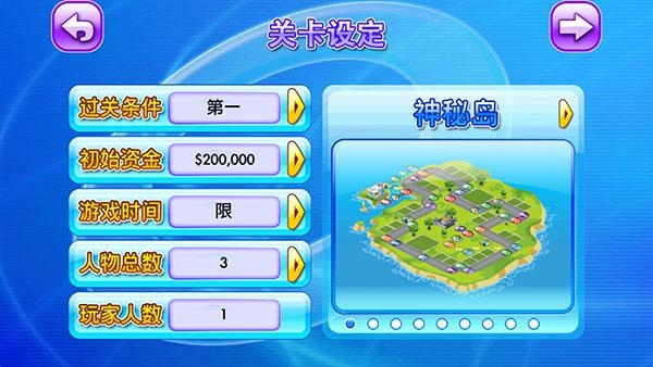 2、在关卡设定界面对游戏时间、人物总数、初始资金进行设定后,点击→进到下一步。