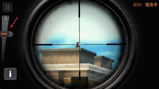 3、拖动左侧的按钮即可打开瞄准镜,对敌人进行瞄准。