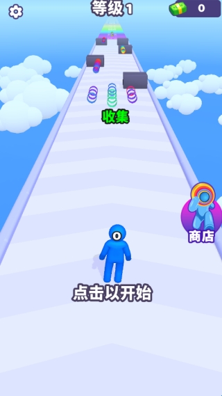 2、点击开始游戏,收集前方的圈环,避开移动障碍物与强风区域,防止圈环倒塌游戏结束。