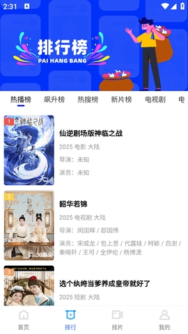 4、权威排行榜单:提供“热片榜”“新剧榜”等权威排行,直观展示影视热度,避免选择困难。