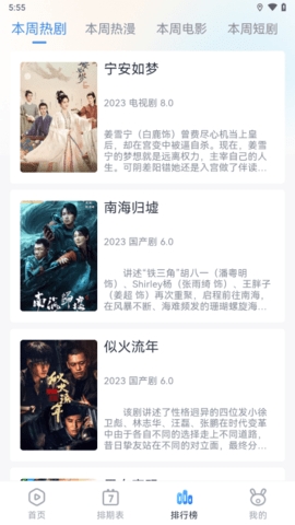 南坊追剧是一款拥有强大搜索引擎的观影看片神器。软件有着简洁的设计页面,首页为用户推送不同类型的热门影视剧作品和影片,对于一些最新上映的影视作品还有相关的排期表可以了解,用户随时都可以在软件内观看到最新的正版影视作品。