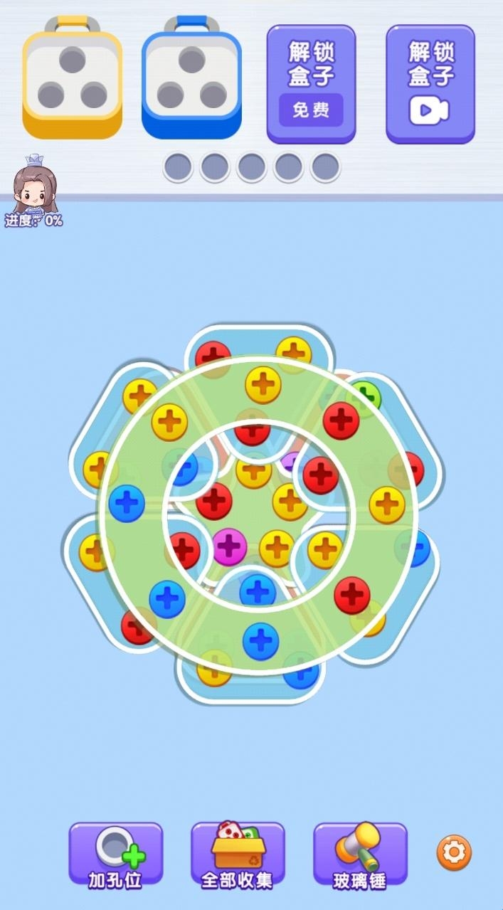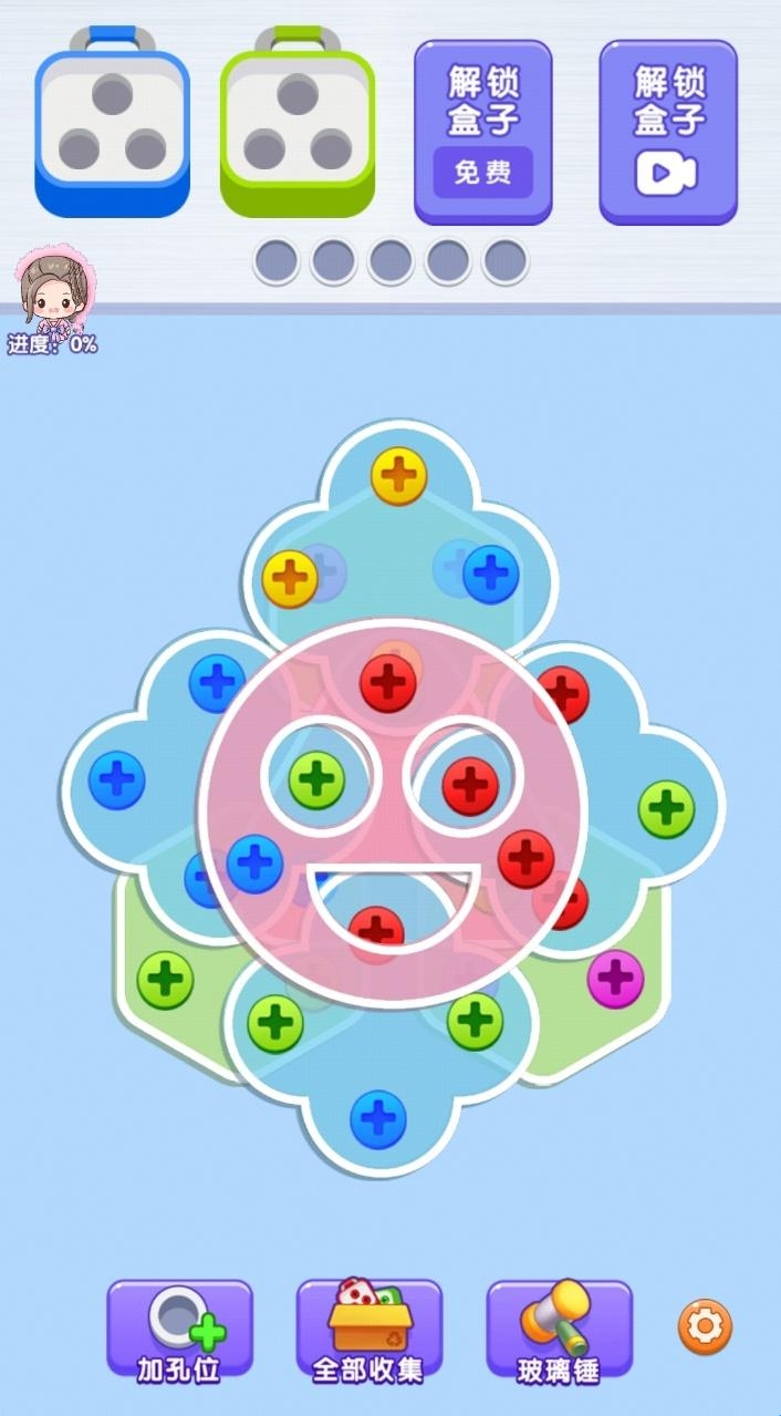 2、还可以收集特定数量的螺丝、消除一定数量的某种颜色螺丝、消除障碍螺丝等。