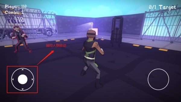 2、即可进入格斗场场地,玩家可以通过操控左侧按钮控制人物移动方向。