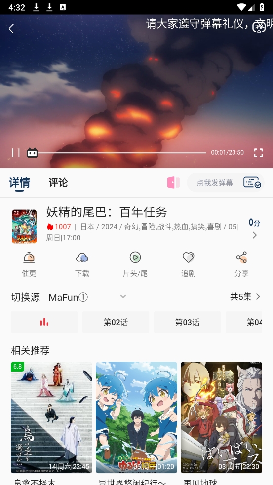 MaFun动漫是一款全新的看动漫平台。软件收录了多样的动漫类型,涵盖了国产、日漫等各种热门动漫资源,每天都会更新大量的动漫,清新的软件界面提供多条播放线路,所有的动漫资源都可以免费观看,不需要登录就可以直接点击播放。