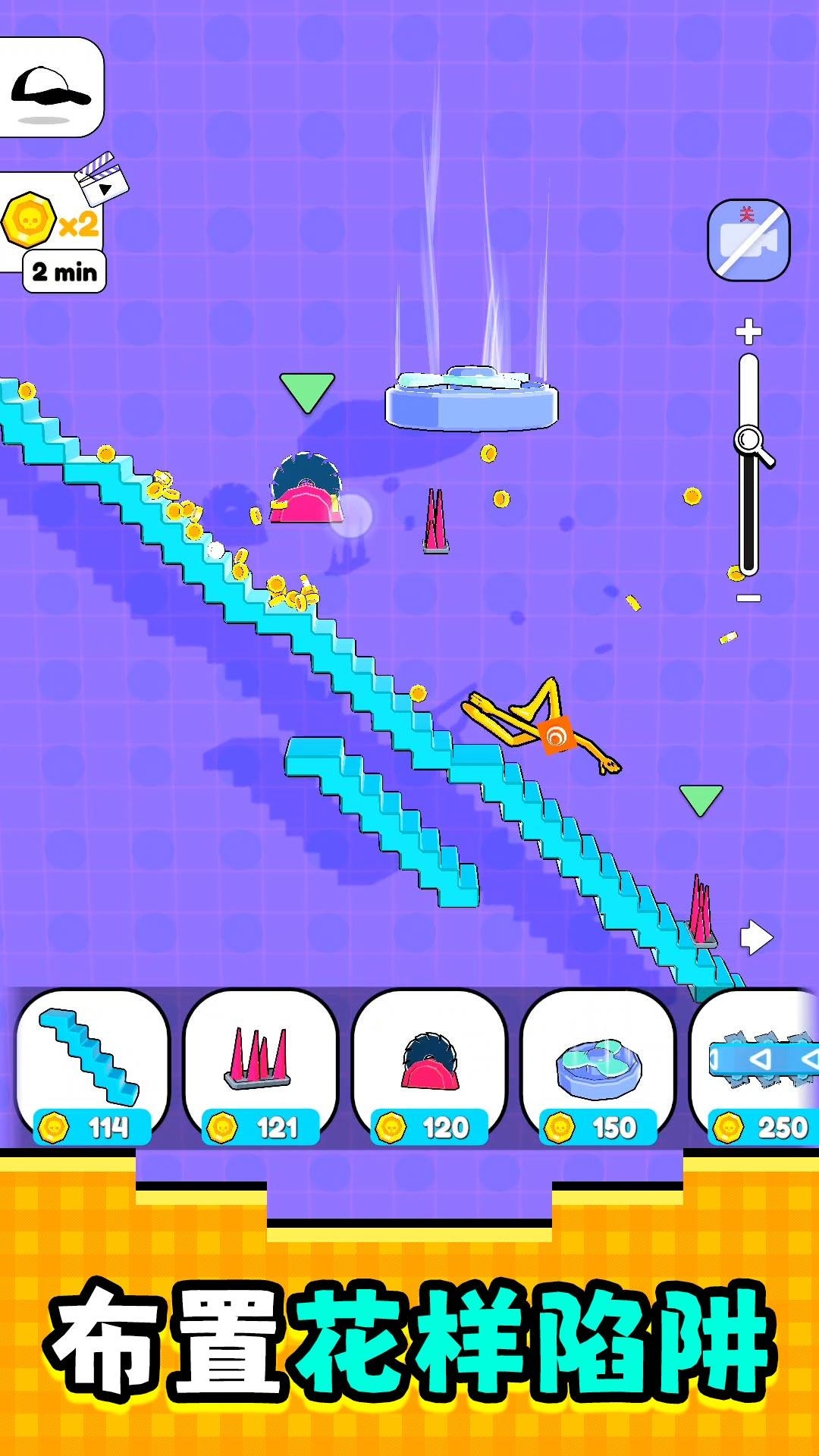 3、每完成一次布局测试后,及时记录高效的道具组合方式,如弹簧锯片楼梯的三层搭配,后续关卡可在此基础上优化调整。
