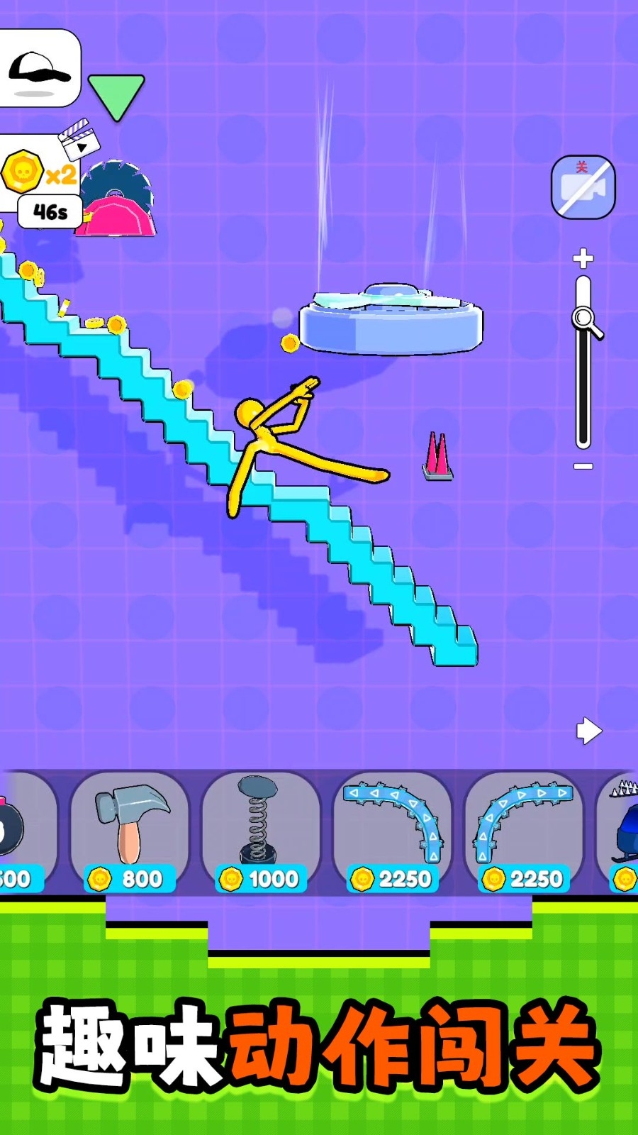 2、自由设计:提供多种可用工具与机关,包括楼梯、弹簧、炸弹等道具,可以自由组合搭配,创造无数种趣味十足的独特场景和玩法。