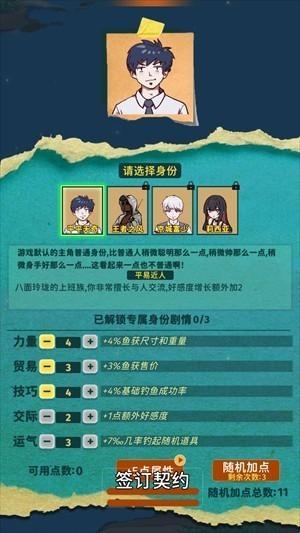 2、创建属于自己的角色,并根据提示分配初始属性点,打造个性化钓手。