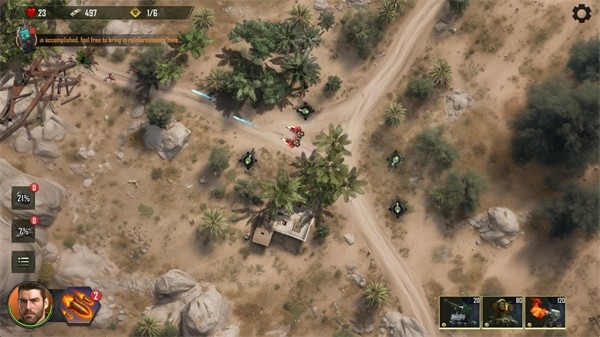 6、在屏幕左侧是玩家可以使用的战术支援,当消灭关卡里所有波次的敌人后就可以通关。