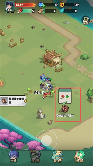 3、遇到受伤的开明兽时,使用对应的道具进行救援,可将其纳入灵兽队伍。
