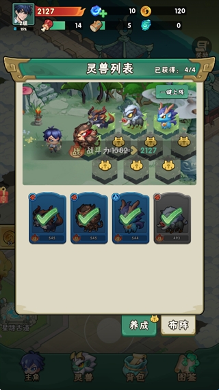 4、合理进行养成和布阵操作,最大化提升灵兽战斗力,打造强力阵容。