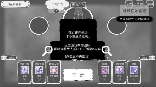 3、多使用医疗类卡牌恢复状态,避免连续三次选择“外神低喃”类选项,否则将强制进入幻觉结局。