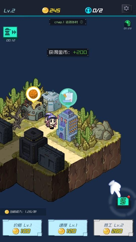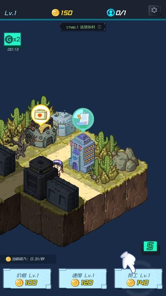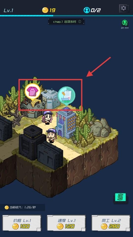 1、进入关卡,消耗金币升级“价格”“速度”“员工”,提升基础经营效率。