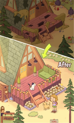 6、游戏还包含了多样的天气效果和动态的森林场景,让世界显得更加生动,你可以打造温馨田园风、奇幻森林风等不同主题的家园。