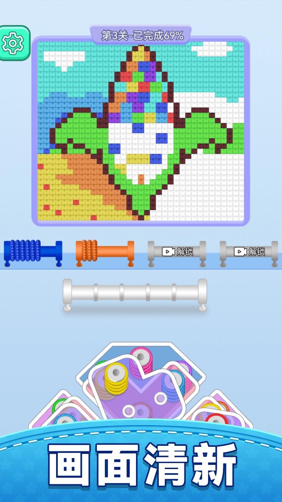 3、通过完成消除任务持续收集各色毛线,亲眼见证黑白线稿逐渐变成缤纷彩色图画的过程;
