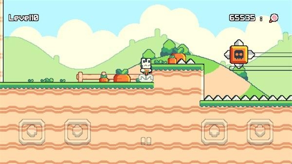 3、冒险中可获取功能性道具:「弹跳蘑菇」提升跳跃高度,「磁铁手套」吸附散落胡萝卜,「时间沙漏」暂停机关运转,道具与关卡机制联动(如用沙漏冻结齿轮陷阱),形成 "收集 -策略 -通关"的玩法闭环。
