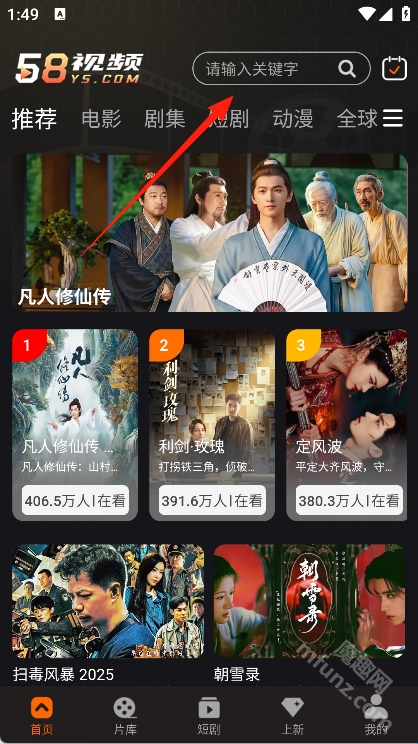 4、在首页右上角搜索框输入影视名字即可快速搜索